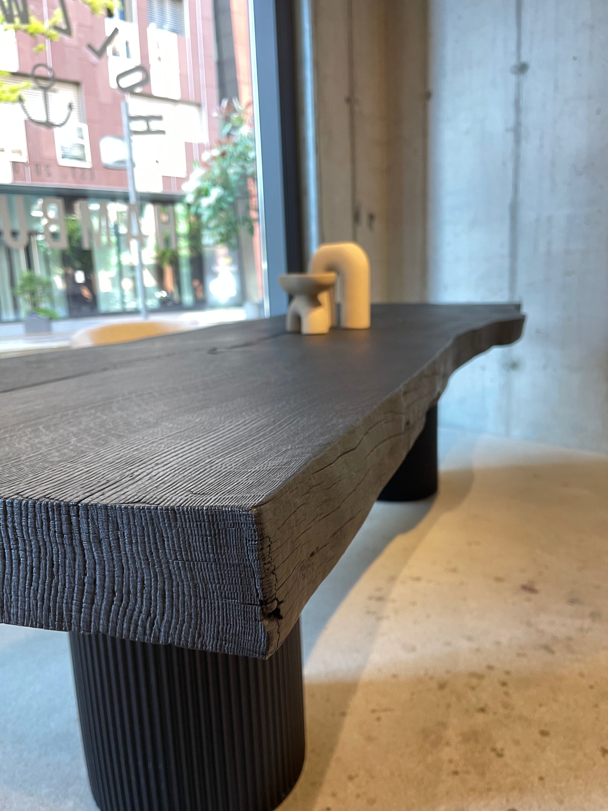 Esstisch Unikat aus einem Stück Eichenholz mit schwarz geköhlter Oberfläche