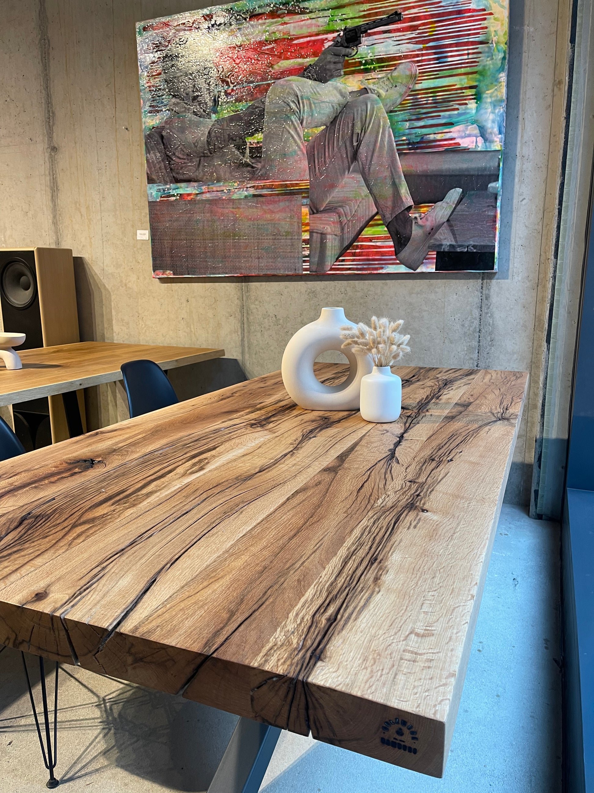 In unserer Ausstellung findest du über 50 sofort verfügbare Massivholztische sowie mehr als 200 Tischplatten zur Auswahl.