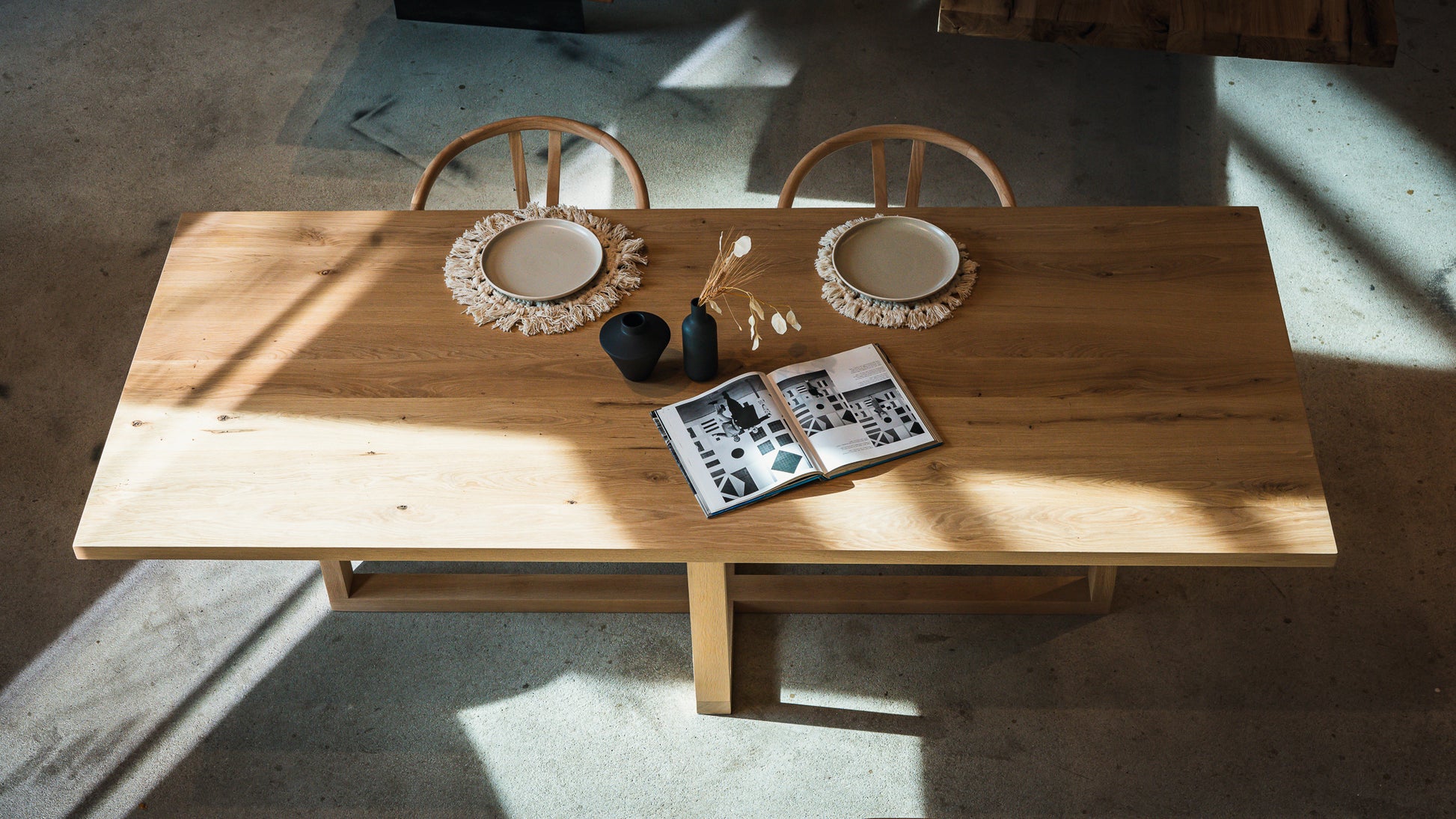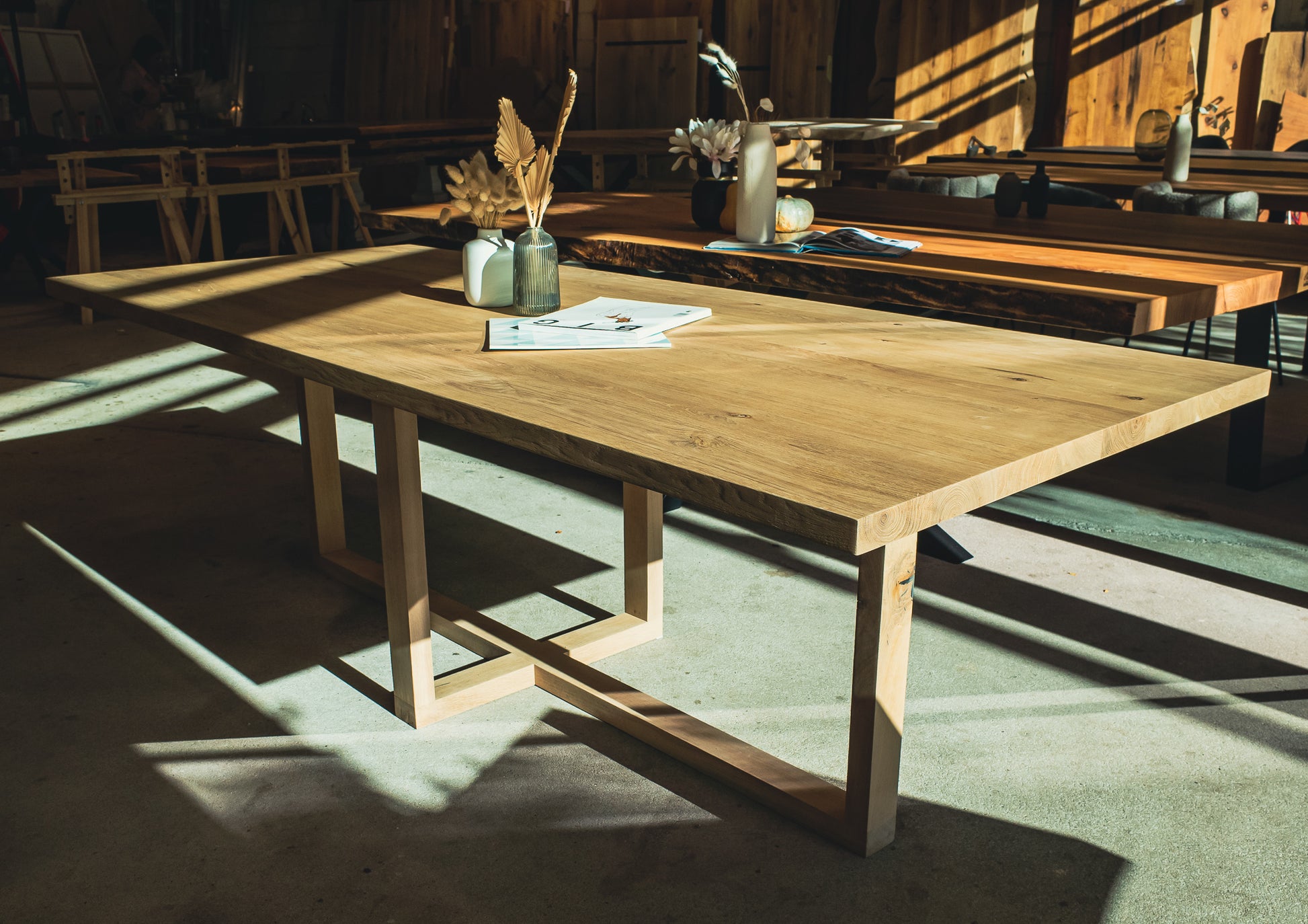 In unserer Ausstellung findest du über 50 sofort verfügbare Massivholztische sowie mehr als 200 Tischplatten zur Auswahl.